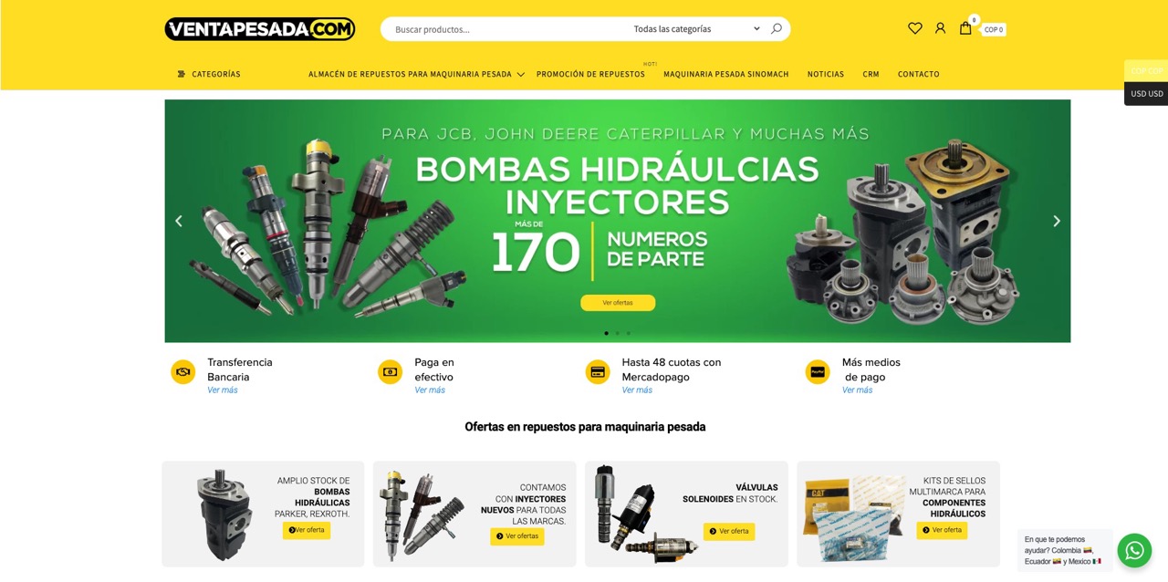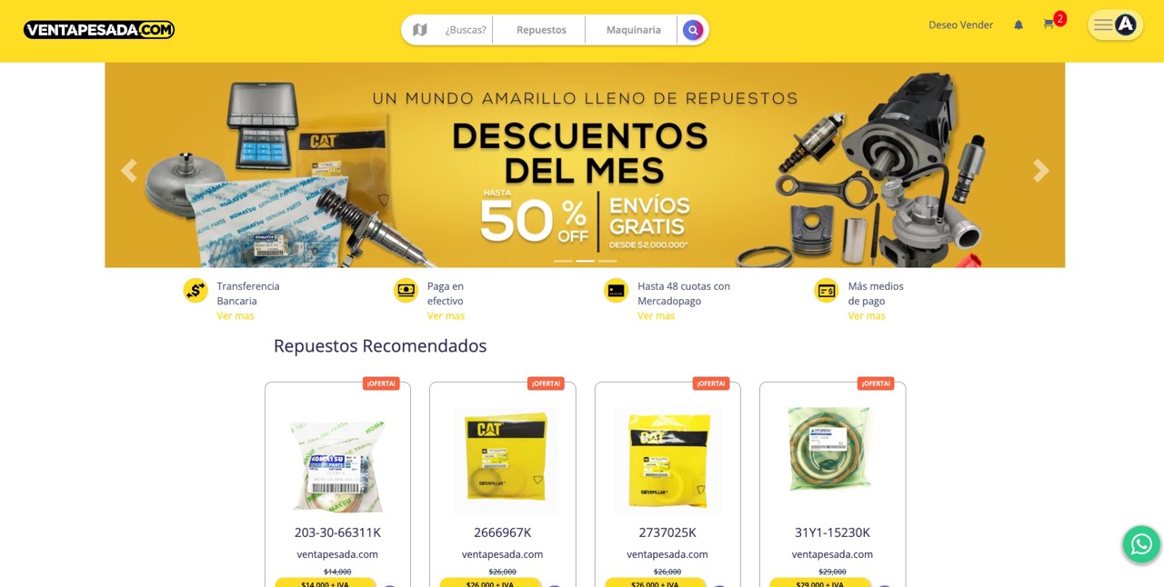 VentaPesada.com is an advanced e-commerce platform focused on the distribution of heavy machinery parts, offering components from brands like Caterpillar, Komatsu, JCB, John Deere, Hitachi, and Kobelco. I developed the architecture of VentaPesada with a multi-branch approach, allowing the system to manage inventories across different locations seamlessly. This structure enables a giant marketplace where products from various companies can be listed and accessed in real-time. The platform not only centralizes diverse inventories but also ensures accurate order fulfillment and comprehensive product availability.